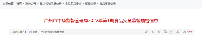 中国质量新闻网讯 近日,广州市市场监督管理局发布2022年第1期食品安全监督抽检信息。本期抽检炒货食品及坚果制品146批次,不合格4批次、合格142批次。