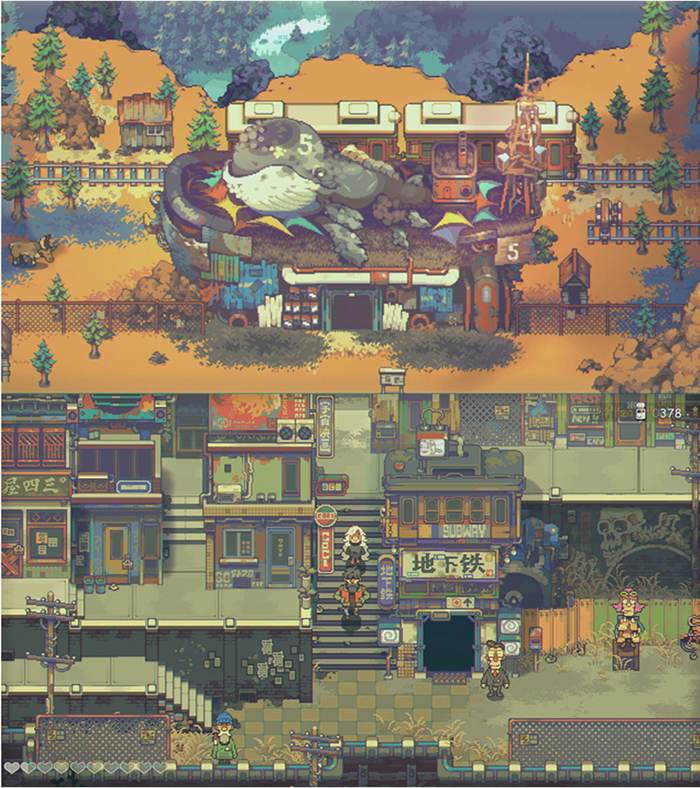 看起来有些反主流的《风来之国》是一款像素风格冒险角色扮演游戏,玩家将控制矿工大叔约翰和神秘小女孩珊从地下世界来到地表,展开一场环游世界的冒险。视觉效果是这款游戏的最大亮点,正如游戏开局的画面那样,在复古8bit风(也叫芯片音乐)音乐中,精致的2D世界在眼前徐徐展开。