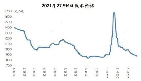 2021年双氧水市场整体表现为前三季度高开低走和四季度虚高跳涨。