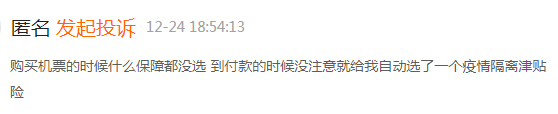 还有不少网友投诉第三方平台强行搭售隔离险。