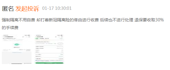 还有网友表示,购买机票时被搭售一份120元的“疫情津贴隔离险”,并非本人自愿购买要求退款,却发现退保无门。