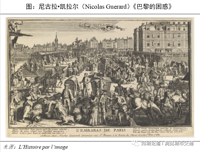 创作于1700年左右的绘画《巴黎的困惑》(L’EMBARAS DE PARIS),描绘了巴黎新桥上的交通拥堵的场景:行人、动物和马车交织在一起争夺空间[2]。