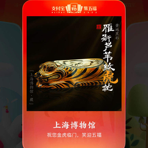 除了这些大家熟悉的扫福、写福、集福等活动外,今年的重头戏,莫过于上海博物馆将首次参与集五福活动,携馆藏特色“虎文物”喜迎虎年。