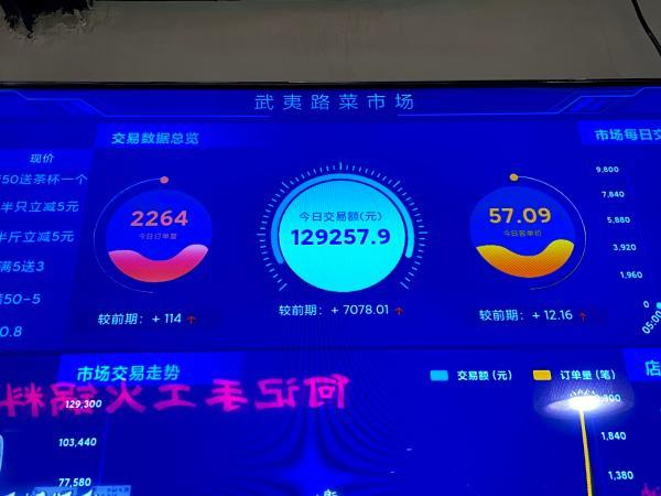 智慧菜场大屏,实时显示当日菜价、全场销售额。