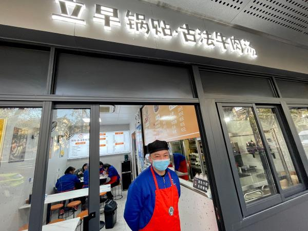 章云龙在自己的锅贴店前。