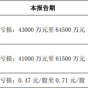 1月18日晚间星期六业绩预告显示,公司预计2021年度归属于上市公司股东的净利润为亏损4.30亿元至亏6.45亿元,上年同期盈利2429.78万元。基本每股收益为亏损0.47元/股至0.71元/股。