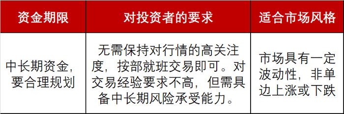该策略对买入的择时要求并不高,因为投资期限一般较长,买入时机的偏差并不会显著影响最终的收益。而且避免了短期频繁操作,较为省心省力。