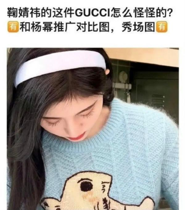 潇湘晨报(报料微信:xxcbbaoliao)记者梳理发现,2020年12月5日,鞠婧祎在新浪微博上发布文案为“大概还在过秋天”的博文,并附上了两张身穿古驰蓝色毛衣的自拍照。照片发布后,有网友指出,毛衣的纹路看起来有些奇怪,兔子图案嘴巴和身体的走线也很粗糙,与官方图有着明显的出入。对此,鞠婧祎的造型师发文解释称,毛衣是造型师个人通过海外代购购买,被代购欺骗才会无意买到有问题的衣服。