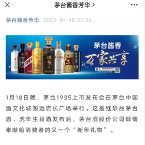 1月18日晚,贵州茅台(600519.SH)正式对外推出系列酒新品——“茅台1935”。对于这款新品,平安证券研报认为它是“茅台完成‘十四五’发展目标的战略级产品。”