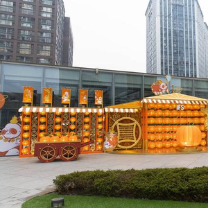 祈愿好运,是中国传统佳节的民间习俗。农历新年来临之际,成都IFS与联合云程《OMG 民间百神》系列创意合作,以“福禄寿财”四神衍生全新的新春节日形象,另以“桔”为主调,取“大桔大利”的祝福之意,在七层雕塑庭院打造出桔星高照许愿墙,喜迎新春的到来。一颗超萌橙色大桔子“躺”在红灯笼墙前,无数超级大金币碰撞在一起发出快乐的声音,新年伊始,快来许愿墙前向胖胖的“福神”许下新年心愿,让你新的一年大桔大利,顺风又顺水。