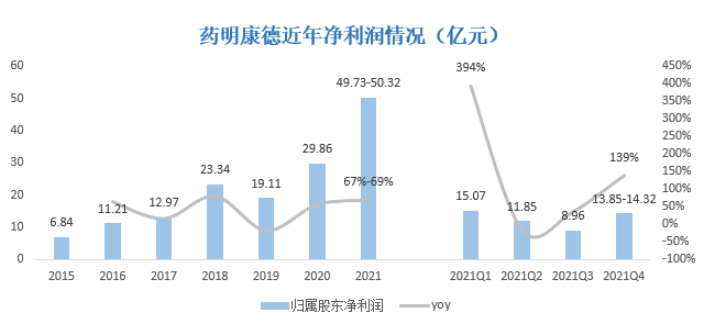 药明康德发布2021年年度业绩预增公告,营业收入增加62.83亿元-63.66亿元,预计同比增长38.0%-38.5%,营收增速创上市以来新高。