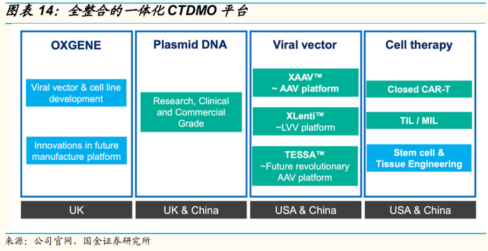 全整合的一体化CTDMO平台形成。通过收购OXGENE,药明康德将拥有专注于细胞和基因疗法CTDMO药明生基的全资子公司;同时,OXGENE将保留原公司名称,并成为药明生基在欧洲的首个研发生产基地。