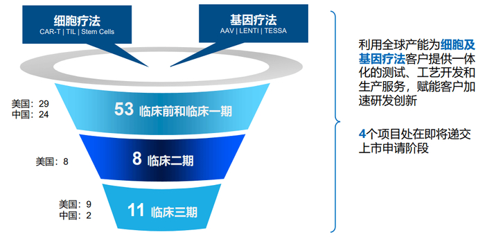 一体化CTDMO平台助力管线持续扩张。公司CTDMO业务主要的客户仍来源于美国地区,目前有4个项目处于在即将递交上市申请阶段。