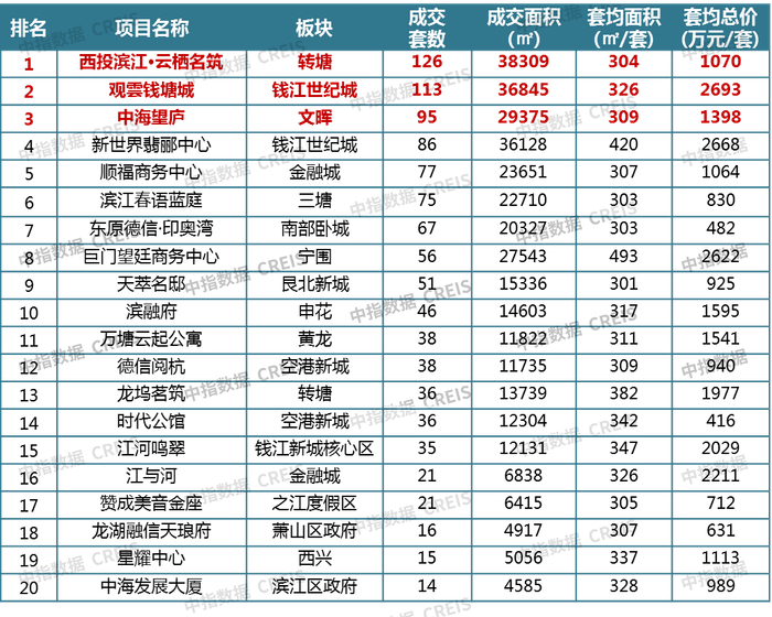 图:2021年杭州市区(不含富阳、临安)销售套数TOP20大平层项目