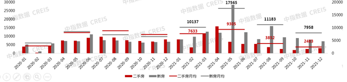 全年走势波折,1-3月尽管横跨春节假期,但成交规模仍延续20年底热度;进入二季度,4月二手房成交量创年内新高,5月开始市场高位回落,成交持续下滑,到10月仅成交1852套,创历史新低;11、12月,伴随着房贷利率的宽松、放款速度加快,二手房市场止步于六连跌,成交量探底回调,阶段性以价换量的局面横亘在市场上。