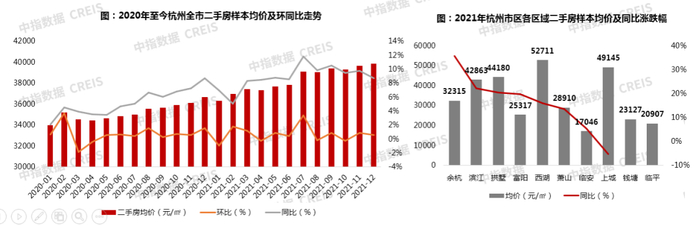 分区域来看,二手房交易热度较高的余杭、滨江、拱墅区二手房价格同比涨幅居前三,涨幅均超20%。
