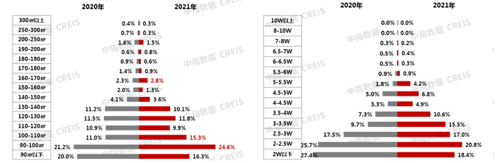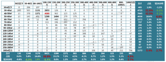 图:2021年商品住宅产品套总价分布