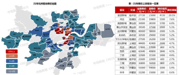 随着第三次集中出让土地挂牌,杭州多个板块新房限价出现调整,崇贤新城、大江东、南部卧城、萧山开发区、运河新城等多个板块限价上调,其中崇贤新城新房限价由23000元/㎡提升至27720元/㎡,限价涨幅20.5%,各板块涨幅排名第一,大江东河庄板块的新房限价也上涨了1500元/㎡,由原来的19800元/㎡上涨至21300元/㎡。
