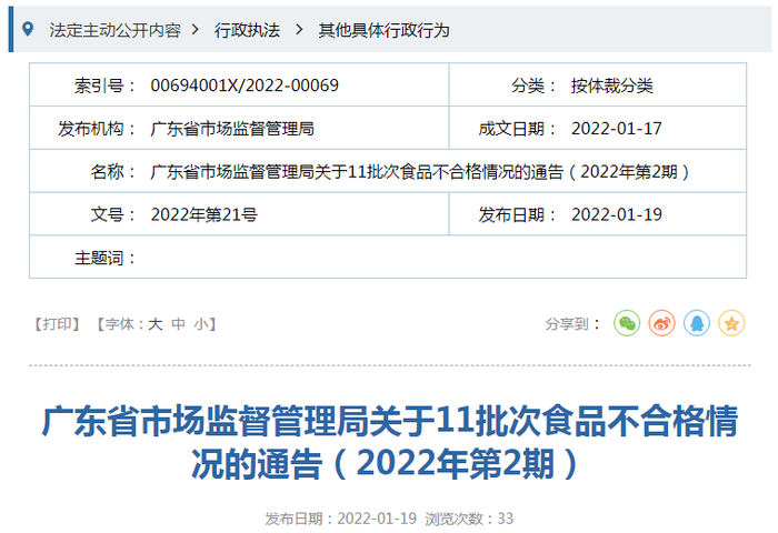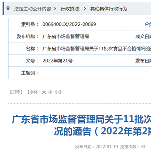 中国质量新闻网讯 2022年1月19日,广东省市场监督管理局网站发布关于11批次食品不合格情况的通告(2022年第2期)。本期共抽检8类食品1367批次样品,其中抽检酒类样品199批次,主要为白酒、果酒、啤酒、葡萄酒、黄酒、配制酒、其他蒸馏酒、其他发酵酒,合格样品196批次。合格产品具体信息如下: