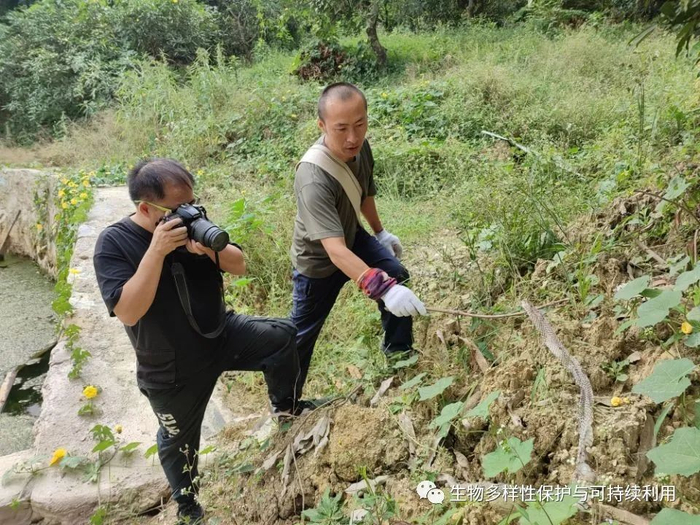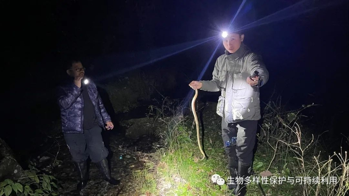 9.一个意外收获——察隅烙铁头Ovophis zayuensis,图左侯绍兵,图右于中斌(KIZ硕士研究生),黄显坤拍摄