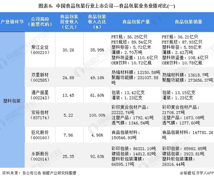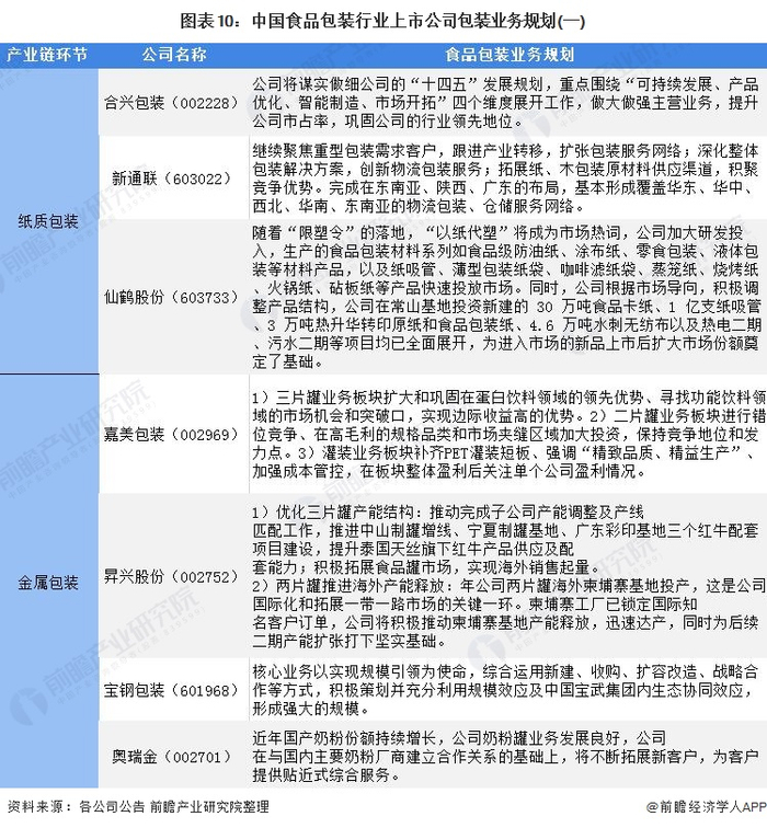 原标题:【最全】2022年食品包装行业上市公司全方位对比(附业务布局汇总、业绩对比、业务规划等) 来源:前瞻产业研究院