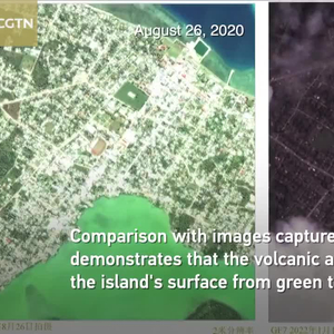 【自然资源部国土卫星遥感应用中心发布卫星图像 显示汤加火山喷发造成的破坏】中国自然资源部国土卫星遥感应用中心拍摄到汤加首都努库阿洛法火山爆发后的多幅图像。与2020年8月拍摄的图像相比,火山灰使该岛的表面从绿色变成了灰色。The Land Satellite Remote Sensing Application Center of the Chinese Ministry of Natural Resources captured and released multiple satellite images of the Tongan capital Nuku'alofa after the volcanic eruptions on January 14 and 15. Comparison with satellite images taken in August 2020 demonstrates that the volcanic ash has turned the island's surface from green to gray.