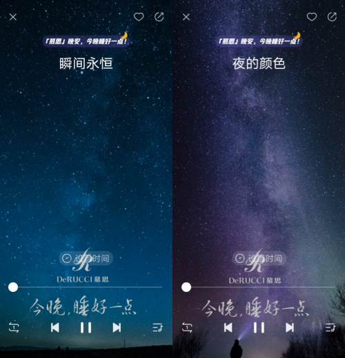 喜马拉雅通过与慕思、梦百合等品牌展开合作,让“声音+寝具”构成了全新睡眠场景。喜马拉雅从2020年开始,与慕思寝具共同打造“助眠频道”, 通过白噪音、音乐、情感治愈等哄睡声音为用户提供长期助眠服务,让品牌关怀成为一种不打扰的功能陪伴。在喜马拉雅平台夜间热门节目中,还通过声音入睡提醒的方式触达夜间活跃人群;将品牌传播变成一种日常生活陪伴,与目标用户建立长期的沟通。