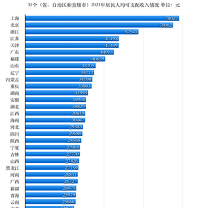 国家统计局最新公布的31个省(自治区、直辖市)2021年居民人均可支配收入数据显示,北京、上海突破7万元大关,有8个省份超过全国35128元的平均水平,均在东部地区。