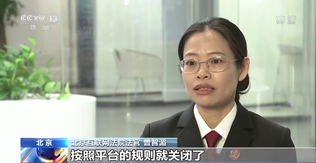 北京互联网法院法官 曾智湄:我们也想通过这个案例,让商家知道,任何的一个平台的这个规则的制定,双方之间的意愿,都要符合法律的规定,而不仅仅说平台已经关了,那我就没有这个履行合同的这个义务了。