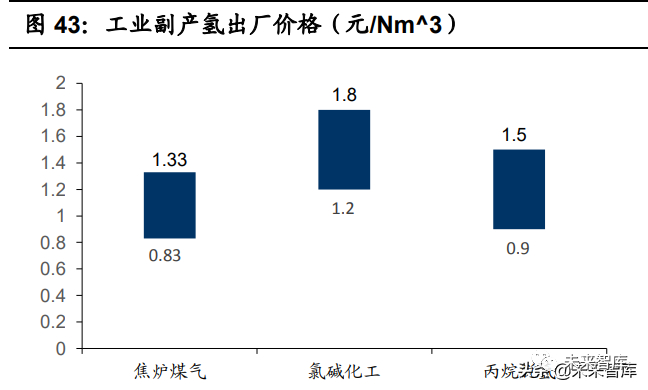 资源丰富,但氢能产业长期发展无法完全依赖副产氢。我国工业副产氢资源非 常丰富,可作为我国氢能行业起步阶段的过渡性氢源,根据测算,副产氢出厂 价格仅略高于化石能源制氢。然而,副产氢资源分布不均,主要位于我国焦炭 行业以及煤炭产地,即西北地区,难以覆盖至东部、南部及中部地区,在考虑 储运成本后经济性大打折扣。此外,我国企业在环保、节能要求提高后加装了 副产氢回收装置,从而使得大部分副产氢内部消化。因此,从长期来看,副产 氢不适合作为主要氢源。