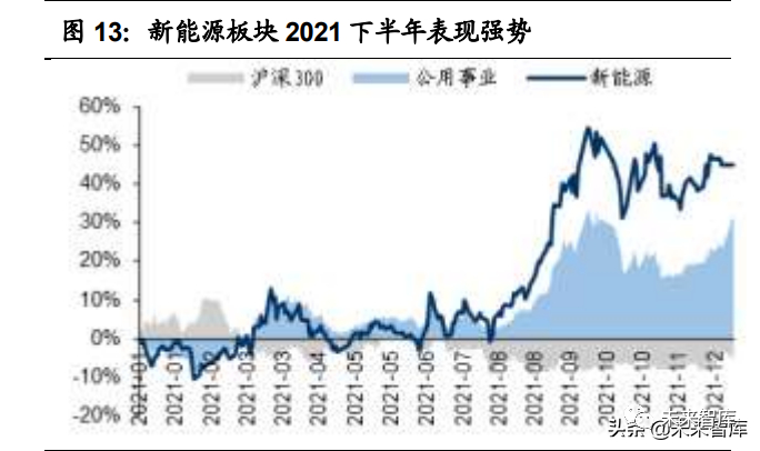国家能源局 6 月发布《关于 2021 年新能源上网电价政策有关事项的通知》, 我国陆上风电、光伏项目正式进入平价时代。后续绿色电力及电力市场化交易 政策及试点不断推进。新能源装机确定性达成共识,绿电量价齐升预期逐步验 证,新能源运营商下半年开始实现大幅上涨,超过公用事业整体涨幅。港股三 个火电转型新能源公司在同期实现股价的大幅上升。