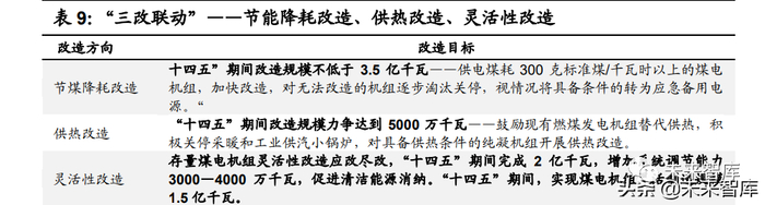 12 月中央经济工作会议进一步提出,要立足以煤为主的基本国情,抓好煤炭 清洁高效利用,增加新能源消纳能力,推动煤炭和新能源优化组合。明确了短 期内新老电力能源的关系,在短期内不是替代而是相互优化促进。截止 2020 年,全国全口径火电装机容量达 12.5 亿千瓦,占全部装机容量的 56.58%。其中煤电装机容量为 10.8 亿千瓦,占全部装机容量的 49%。根据中 电联、国家电网等预测,我们认为碳达峰碳中和目标下,我国煤电装机规模将 于“十五五”期间达到峰值,区间预计在 11-12 亿千瓦。我们预计届时煤电角 色将发生较大转变,而如今煤电改造的加速是对未来转变的探索和量变积累。