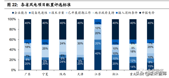 虽然行业处在整体的确定性增长中,随着行业发展阶段、公司运营管理和能力、 政策导向等各方面的演变,未来基本可以确定会显现出一定的分化,但预计明显分化或在 2022 年较难出现。目前来看,由于运营模式具有较高同质化,项目开发方面灵活度较高,存在地 方差异,企业需要“软硬实力”兼具。2021 年处在企业规划与政策衔接和大 规模获取指标“跑马圈地”的前期,2022 年项目开始建成并网和指标开始转 化落地开始,将是观察窗企业竞争力和未来分化趋势的窗口期。根据现有新能源项目竞配标准,企业产业能力(开发经验、资本实力、产业链 投资等)、前期工作开展情况及申报电价为最核心的三个项目指标配置参考因 素。