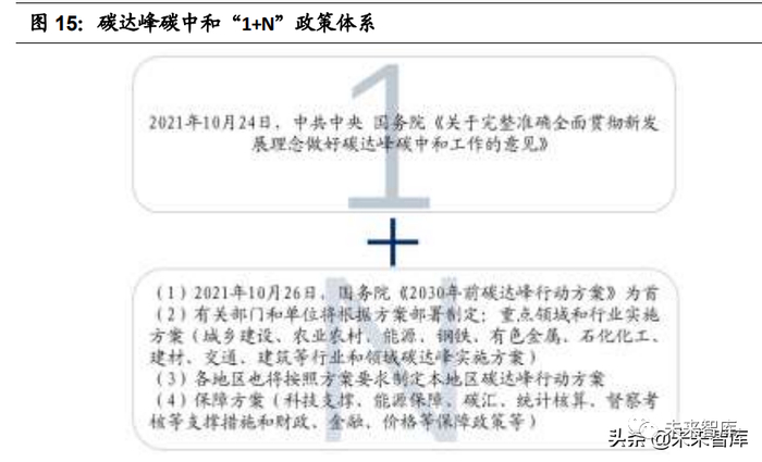 2021 年 10 月 24 日,中共中央国务院联合发布了《关于完整准确全面贯彻新 发展理念做好碳达峰碳中和工作的意见》是党中央对碳达峰碳中和工作进行的 系统谋划和总体部署,覆盖碳达峰、碳中和两个阶段,是管总管长远的顶层设 计,发挥统领作为“1+N”中的“1”。