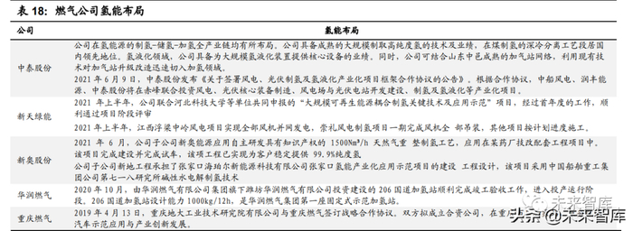 2) 发展管道掺氢业务:目前 我国仅有 100km 氢气管道建设,2030 年我国氢气管道有望达到 3000km, 短期内纯氢气管道输送技术尚待进一步突破,管道建设规模难以扩大,天 然气掺氢为当前最佳管道运输选择。燃气公司利用现有管网基础设施可大 力发展管道掺氢业务;