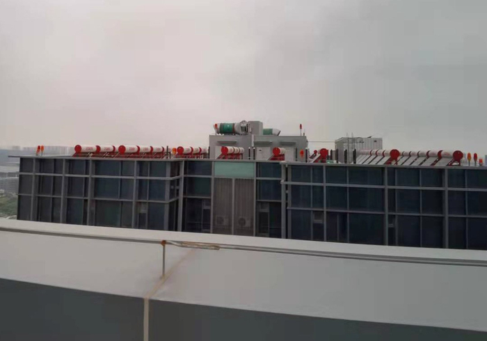 瀚威房地产宣传该项目有“空中花园”和音乐喷泉(上图)。购房人称,宣传的空中花园已经安满了太阳能热水器。(下图)