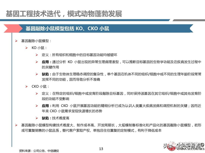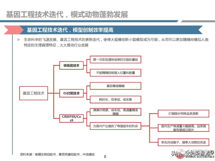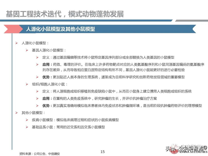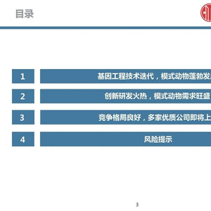 生命科学的飞速发展、基因工程技术的更新迭代,使得大规模创新小鼠模型成为可能,从而可以更加精确地模拟人类 特定的生理病理特征,大大推动行业发展。