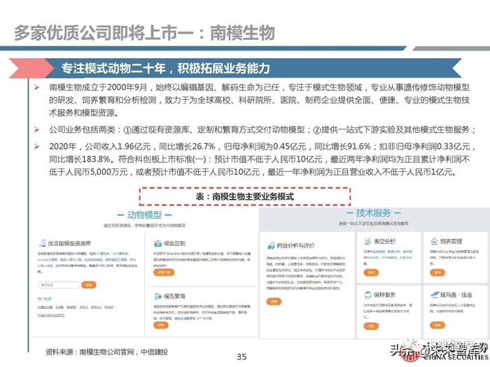 公司业务包括两类:①通过现有资源库、定制和繁育方式交付动物模型;②提供一站式下游实验及其他模式生物服务;