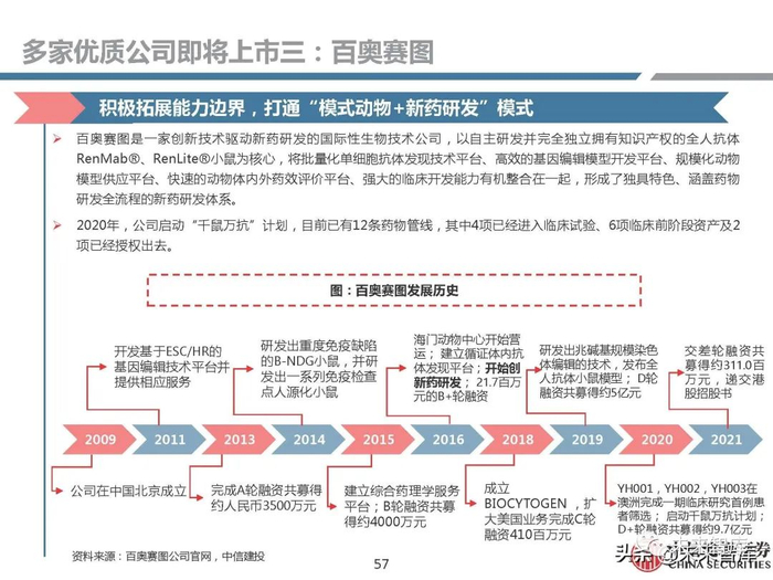 2020年,公司启动“千鼠万抗”计划,目前已有12条药物管线,其中4项已经进入临床试验、6项临床前阶段资产及2 项已经授权出去。