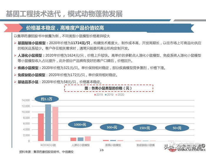 以集萃药康招股书中披露为例,不同类型小鼠模型价格差异较大。