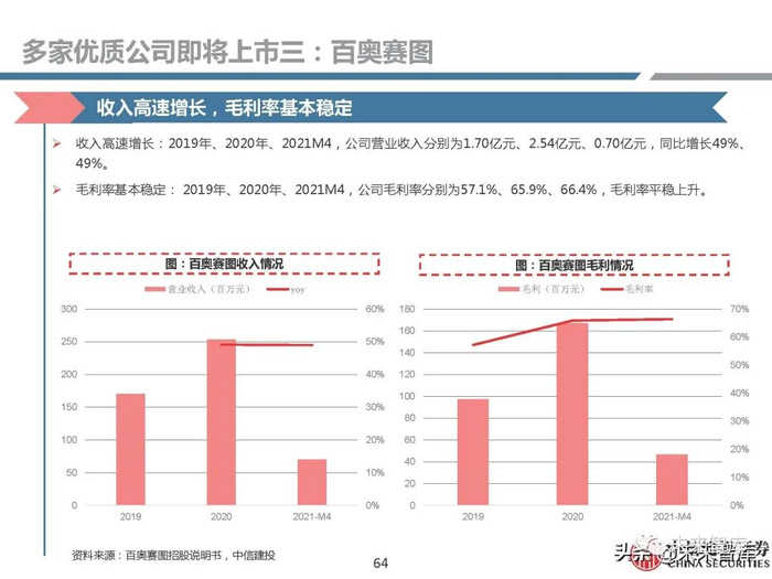2020年,公司收入1.96亿元,同比增长26.7%,归母净利润为0.45亿元,同比增长91.6%;扣非归母净利润0.33亿元, 同比增长183.8%。符合科创板上市标准(一):预计市值不低于人民币10亿元,最近两年净利润均为正且累计净利润不 低于人民币5,000万元,或者预计市值不低于人民币10亿元,最近一年净利润为正且营业收入不低于人民币1亿元。