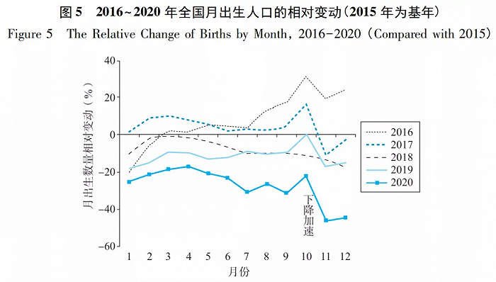 除了生育高峰年龄段女性人口的减少以及女性教育结构的变化以外,2020年开始出现的疫情也使出生人口进一步下降。根据出生人口监测数据的计算,2020年11月和12月的出生人口相对于2015年的降幅达到了45%,比2020年其他月份的降幅扩大了20%以上。