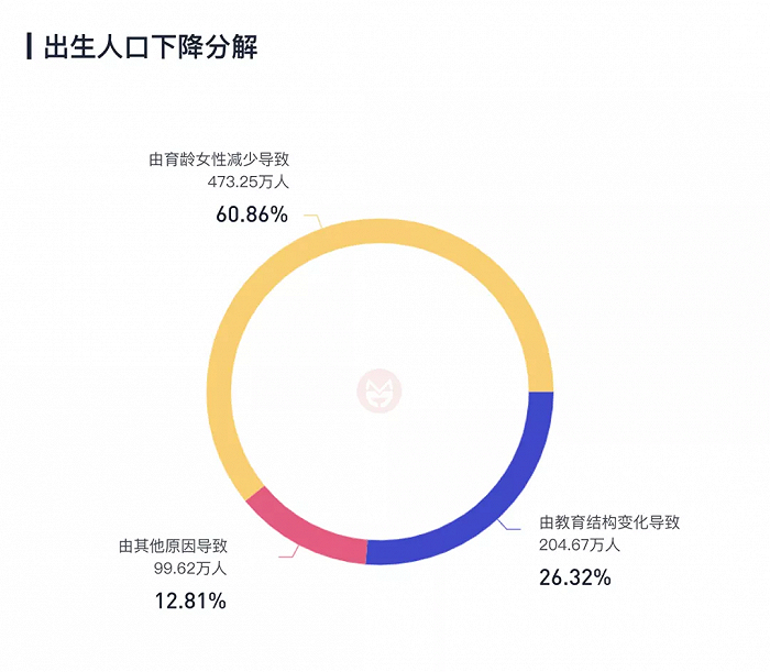 房价高了、养孩子贵了……这些人们常常在谈论的因素,可能没影响,也可能有影响,但不管怎样,他们对出生人口的影响,至多只有100万人。相比之下,房间里的大象——导致了677万出生人口下降的育龄女性数量、年龄结构和教育结构的变化,却极少有人提起。