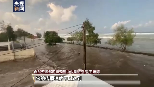 自然资源部海啸预警中心副研究员 王培涛:海啸属于一种长周期的重力波,它的传播速度可以达到每小时700公里以上。长周期的重力波具有长途奔袭的能力,所以,越洋海啸会对数千公里以外的地区产生影响。
