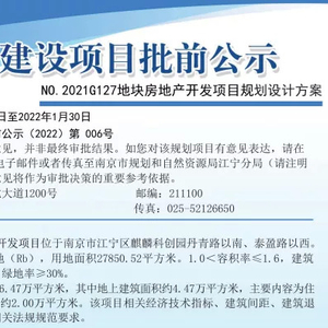刚刚!江宁区人民政府网发布了《NO.2021G127地块房地产开发项目规划设计方案批前公示》,根据规划显示,麒麟科创园将再添6幢低密住宅!