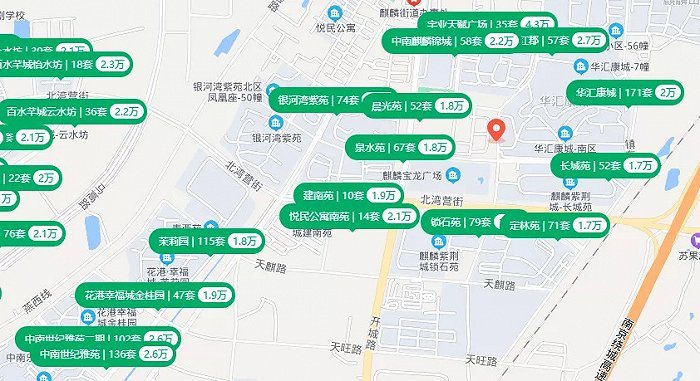 二手房方面,据链家网显示,价格大多集中在1.7万/㎡-2.7万/㎡之间,其中最高的为东方红郡和中南世纪雅苑,价格在2.6-2.7万/㎡之间。