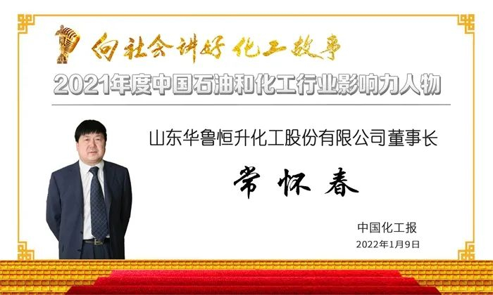 1月9日,以“向社会讲好化工故事”为主题的2021年度石油和化工行业十大新闻暨影响力人物发布盛典,在《中国化工报》社有限公司直播平台和中国网++“直播中国”平台举行。山东华鲁恒升化工股份有限公司党委书记、董事长、总经理常怀春上榜2021年度中国石油和化工行业影响力人物。