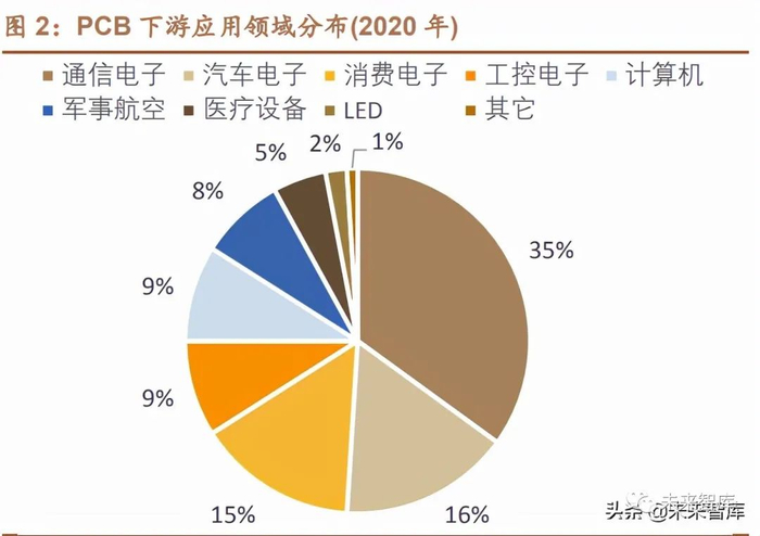 PCB 在汽车中应用广泛,同时汽车也是 PCB 重要应用领域。PCB 作为电子 元器件的支撑,在传统汽车中主要应用于动力控制系统、车身传感器、导航系统、 娱乐系统、导航系统等。从 PCB 产业看,2020 年汽车已经成为 PCB 第二大应 用领域,占比约为 16%。