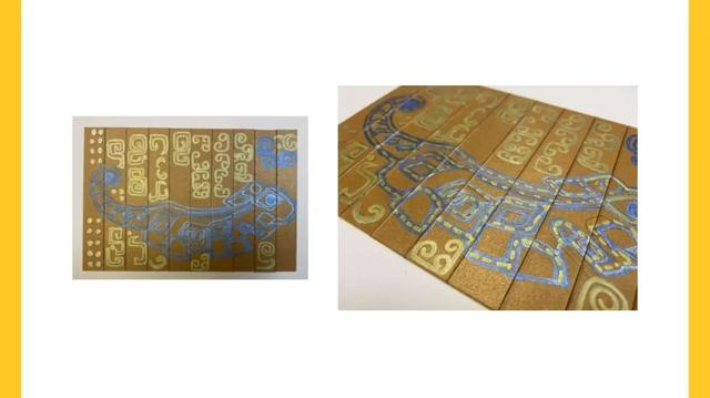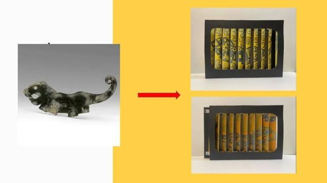 粘好后,整体翻转画面,出现另一面镜像的玉虎。将翻转后的画面上下两端依次和另一张相框粘合。