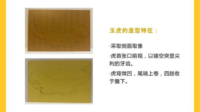画好玉虎的轮廓后,在小玉虎身上增添纹饰,让小玉虎穿上漂亮的纹样衣服哦。注意: